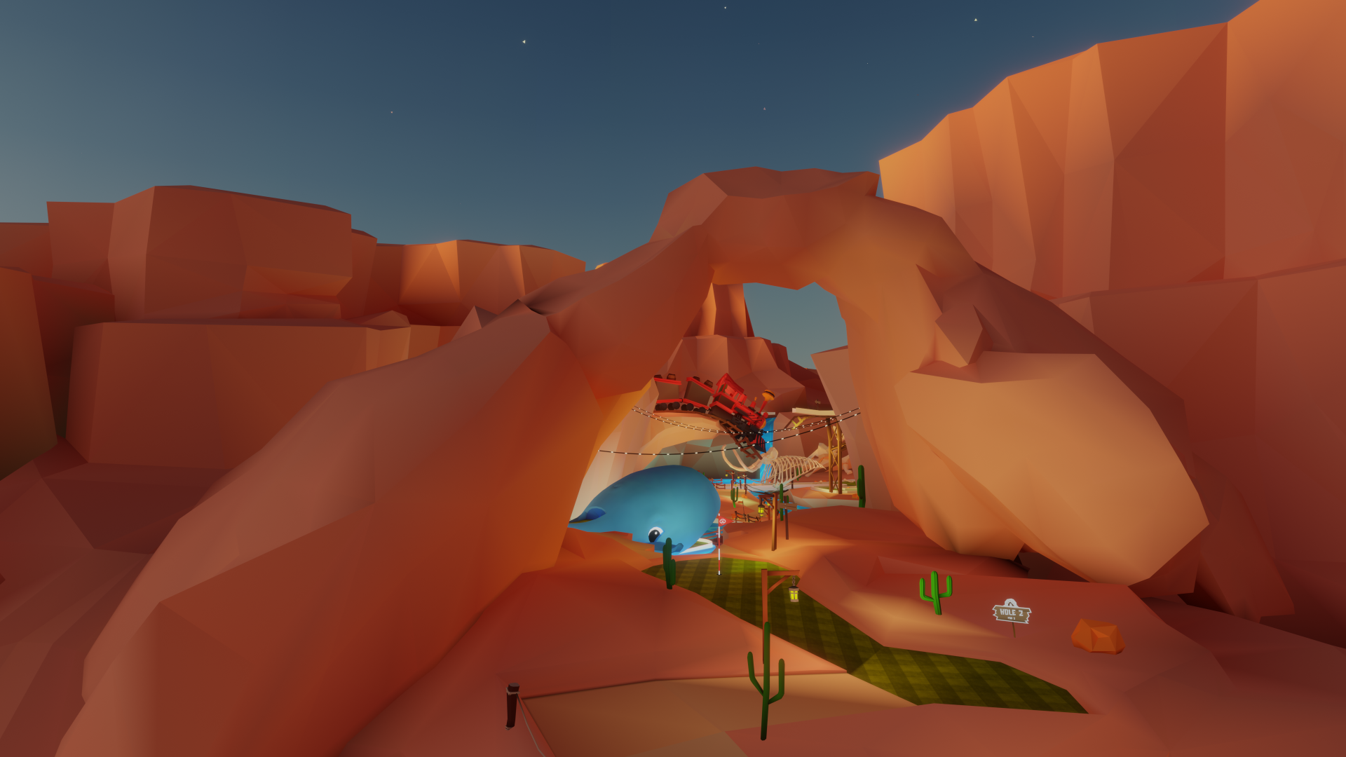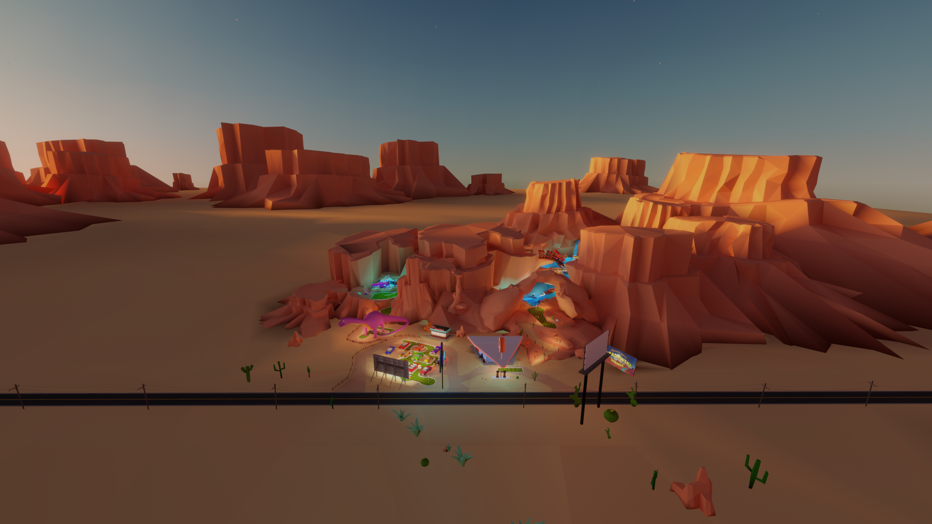 • Incredible, performant 3D technical art spread over a dramatic desert landscape